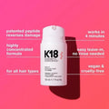 ✔ Patented K18 Peptide™ (from packaging) – Reconnects broken keratin chains caused by bleach, color, and chemical damage, deeply restoring hair structure from the inside out.